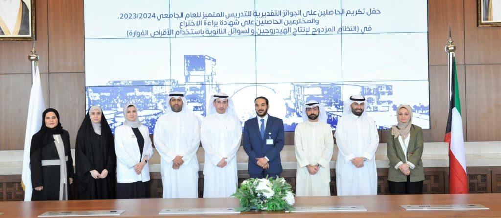 كما تم تكريم المخترعين الحاصلين على شهادة براءة الاختراع في (النظام المزدوج لإنتاج الهيدروجين والسوائل النانوية باستخدام الأقراص الفوارة) وهم د. نواف فيصل الجويهل عضو الهيئة الأكاديمية في قسم الهندسة الميكانيكية بكلية الهندسة والبترول، ود. ناصر مصطفى الصايغ الباحث العلمي المشارك في معهد الكويت للأبحاث العلمية، ود. حسين يعقوب بهزاد عضو الهيئة الأكاديمية في الهيئة العامة للتعليم التطبيقي والتدريب، وم. علي مصطفى الصايغ طالب الدكتوراه المبتعث من الأمانة العامة للمجلس الأعلى للتخطيط والتنمية.