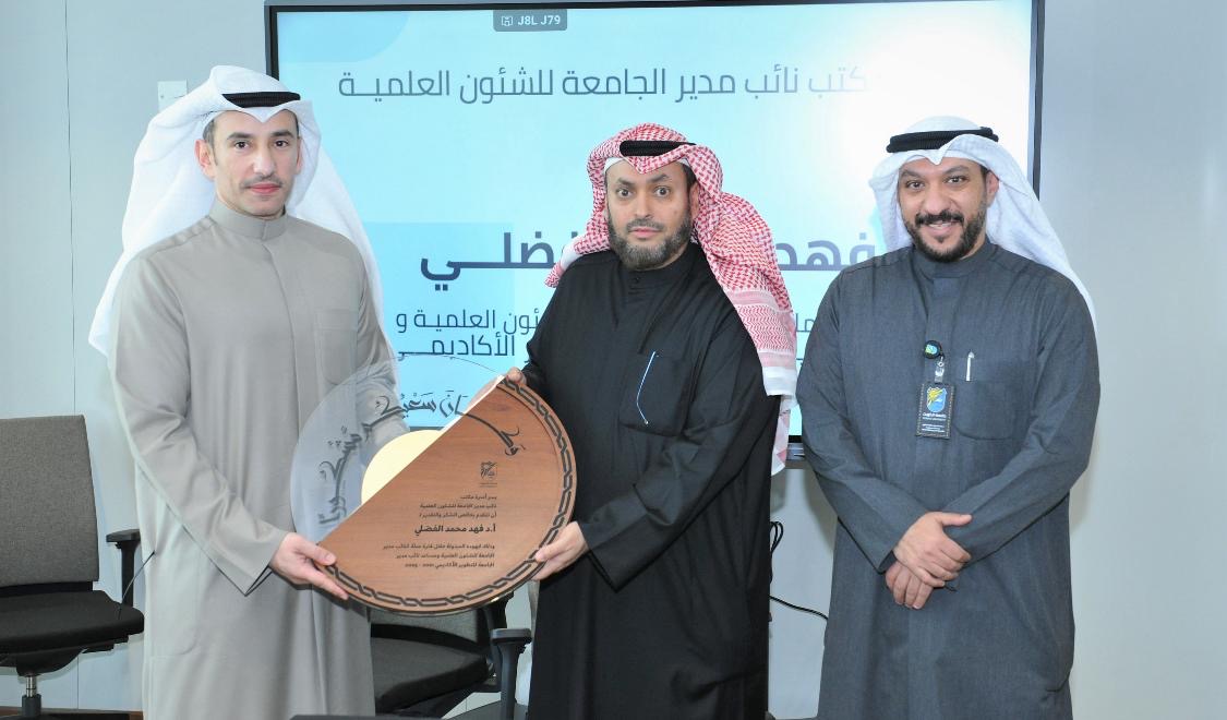 وقد جاء هذا التكريم بحضور أمين عام جامعة الكويت الأستاذ الدكتور مشاري العيفان، ومساعد نائب مدير الجامعة للشؤون العلمية لشؤون هيئة التدريس والعلاقات الثقافية الدكتور عبد الرحمن الصليلي، إلى جانب نخبة من المدراء وأعضاء الهيئة الأكاديمية، الذين عبّروا عن خالص تقديرهم وامتنانهم لمسيرة الدكتور الفضلي الحافلة بالعطاء، مشيدين بدوره الريادي وإسهاماته البارزة في تطوير بيئة العمل الأكاديمي وتعزيز مكانة الجامعة.